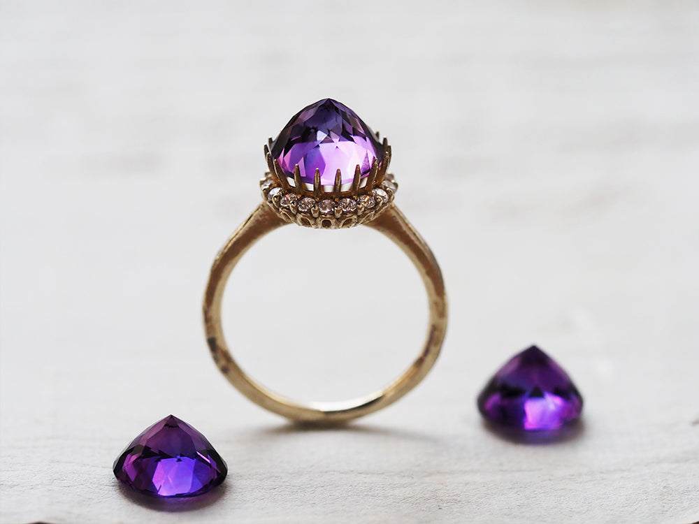 季節を感じる色彩に着目したり、人気のデザインにお仕立てできる宝石を集めたり、毎月テーマを変えて100石以上の宝石をご紹介します。